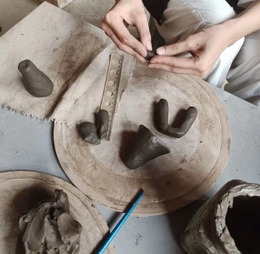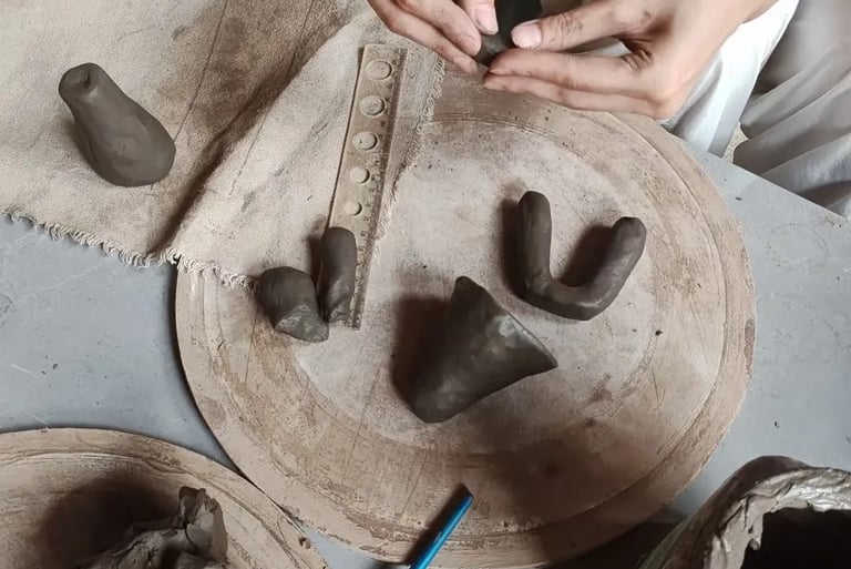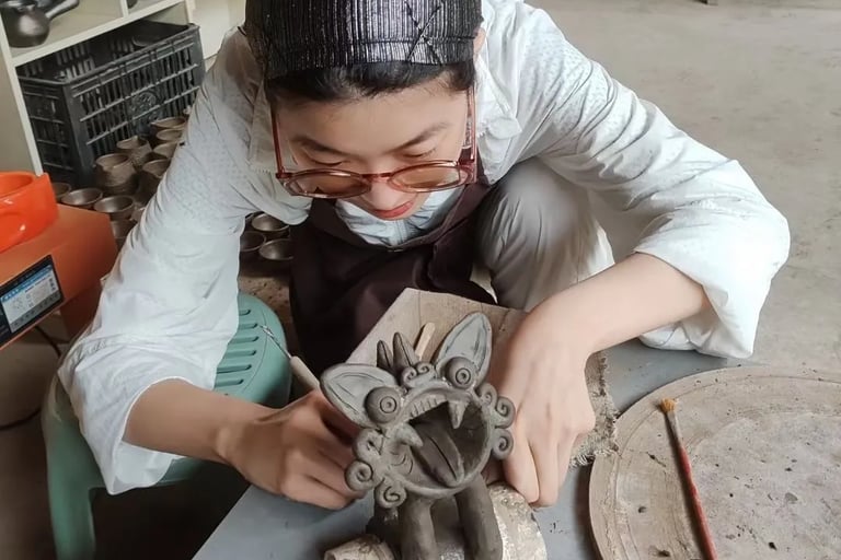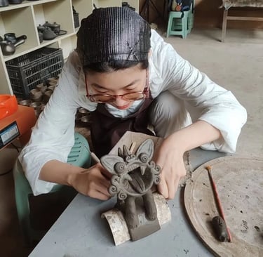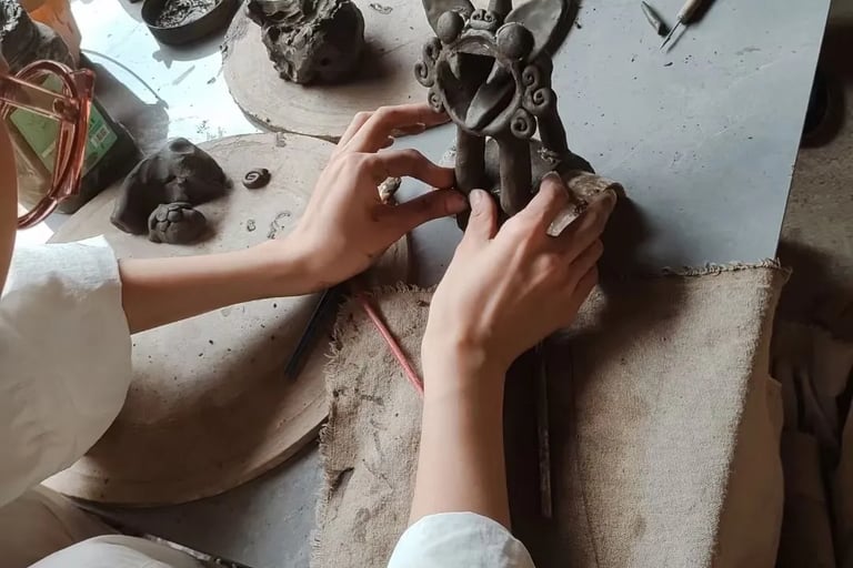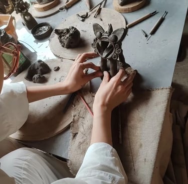 Craft-people making clay cats