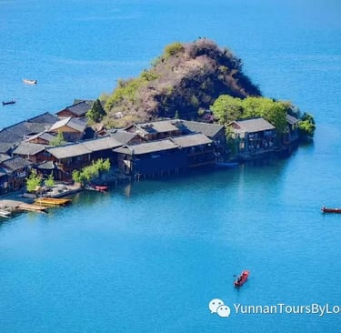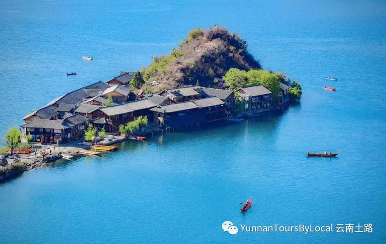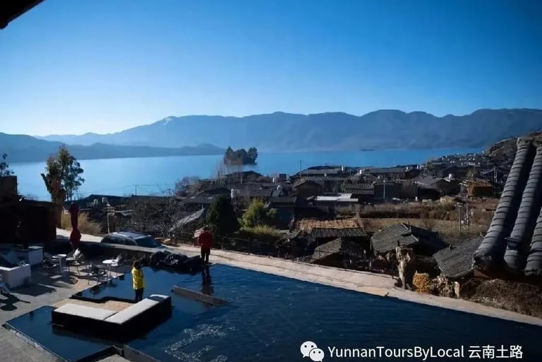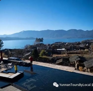 Another big day today! Climb over the mountain behind the village through the primitive forest for 3-4 hours, and enjoy a picnic at the top. The descent is slow and long, about 2 hours. Meet the driver at the end, then drive for 1 hour to Lugu Lake. Stay overnight in a lovely boutique hotel with a view overlooking the lake, for 2 nights.