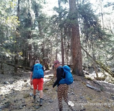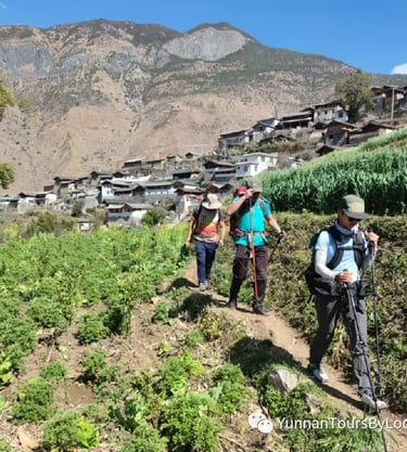 Enjoy a hearty breakfast at the lovely guesthouse. Begin with a 3.3-kilometre hike on a cement and mountain path, followed by about 2 kilometres on a rocky trail with stairs down to Yanke Village. This should take approximately 3 hours in total. Afterwards, walk to Yanke Village, where we will have lunch with a local Naxi family. Then, hike along an almost flat trail with some metal stairs to Baoshan Stone Town for about 7 kilometres, ending the day at a small guesthouse. Take some time to rest!