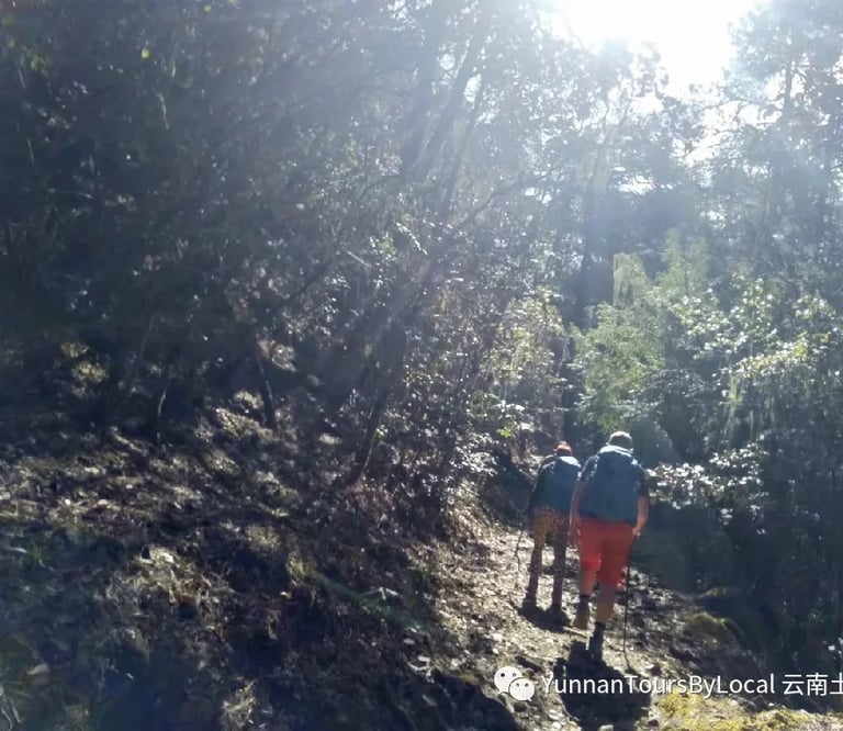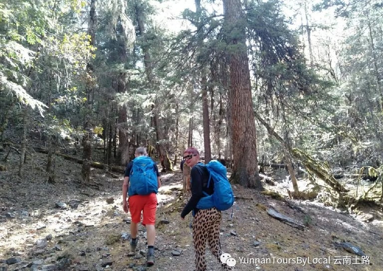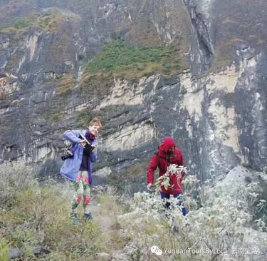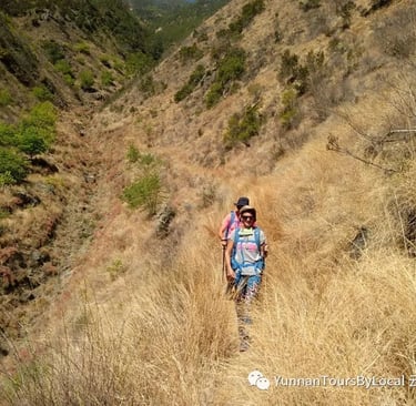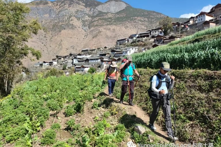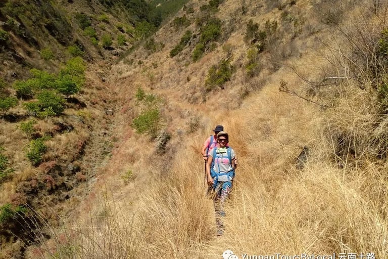 Drive two hours to Tiger Leaping Gorge, hike for seven hours to Walnut Grove, and stay overnight. About two hours climbing, two hours descending, and three hours on a flat mountain path in one day. Total of seven hours, depending on your pace.