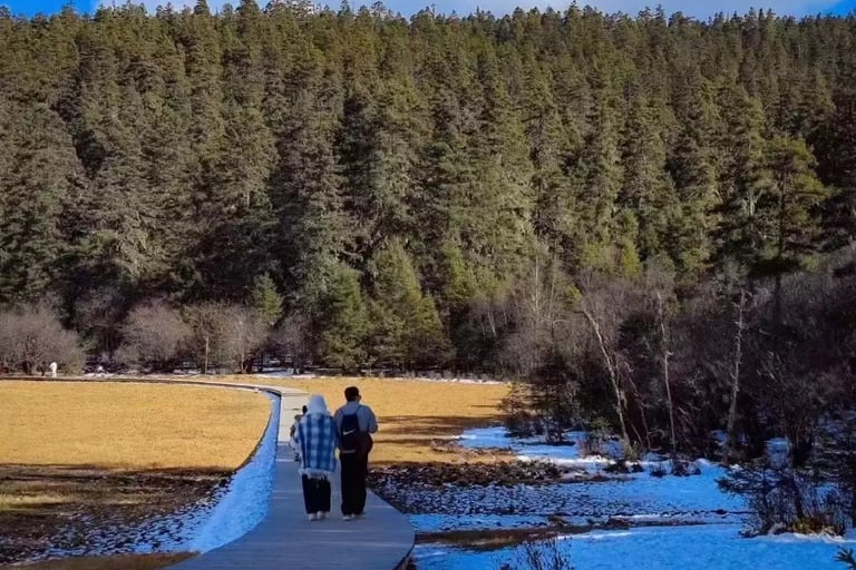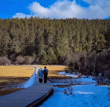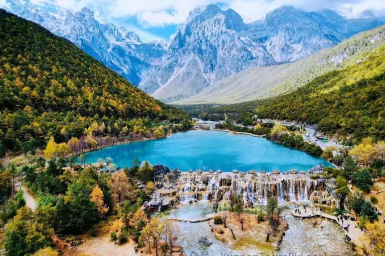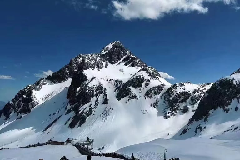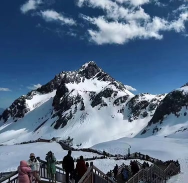 Visit Jade Dragon Snow Mountain and take the cable car to Glacier Park (at an altitude above 4500 meters). If the altitude is a concern, you can take the cable car to Spruce Meadow (about 3300 meters), which offers the best view of the main peaks of the snow mountain. Oxygen bottles and assistance are available if the altitude becomes too much..Then visit the Blue Moon Valley, where the glacier water is naturally blue and green. Enjoy the Impression Lijiang show.
